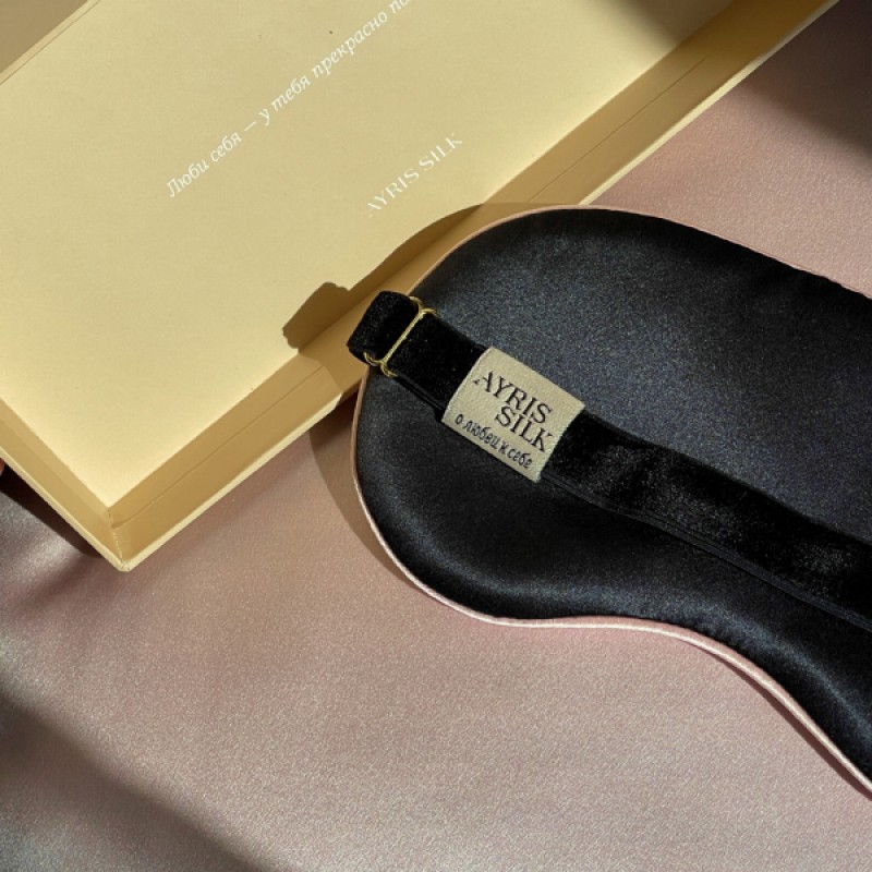 - Черный шелк с внутренней стороны маски полностью блокирует свет
