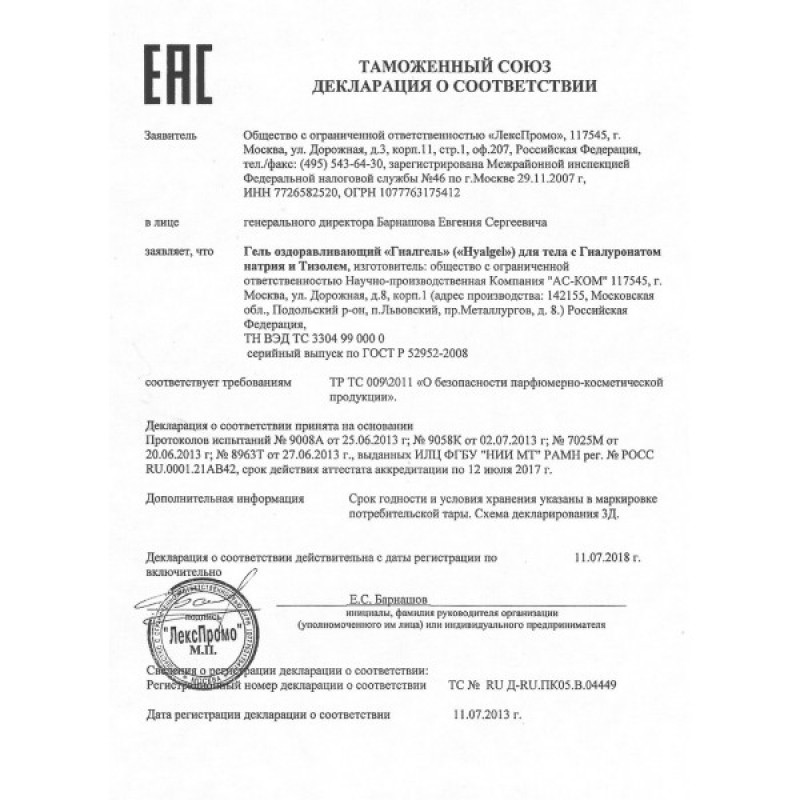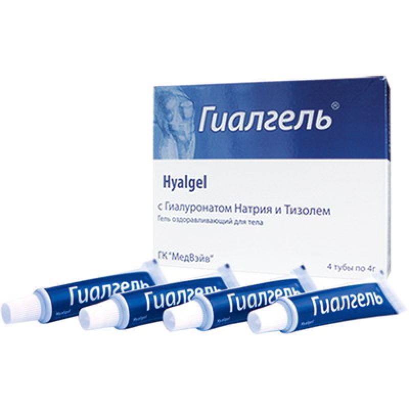 «Гиалгель» можно купить в виде геля для наружного применения со сроком годности до 2-х лет. Гель 2% помещен в тубу. Масса средства составляет 4 г. В упаковке – 4 тубы и подробная инструкция по применению.