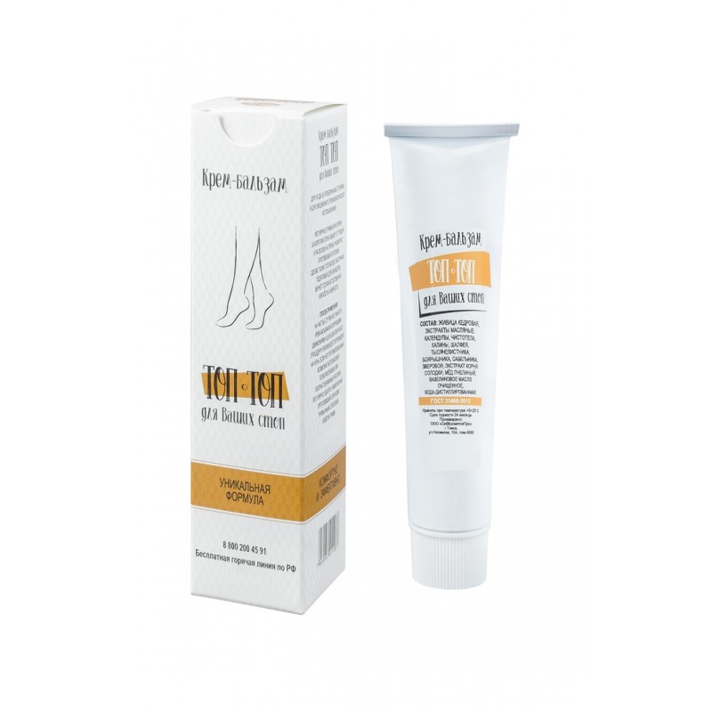 Бальзам для стоп «ТопТоп» предназначен для ухода за проблемными ступнями и для ежедневного профилактического использования. Регулярное применение крема позволит за короткий срок заживить трещины и расколы на пятках, размягчить ороговевший слой кожи, сделать кожу стоп более эластичной, податливой для обработки, вернуть ей естественную мягкость и нежность. Активный растительный комплекс стимулирует регенерацию клеток кожи, способствует восстановлению кожного покрова. При дальнейшем профилактическом применении крема полученный эффект сохраняется на долгое время и облегчает дальнейший уход за стопами.