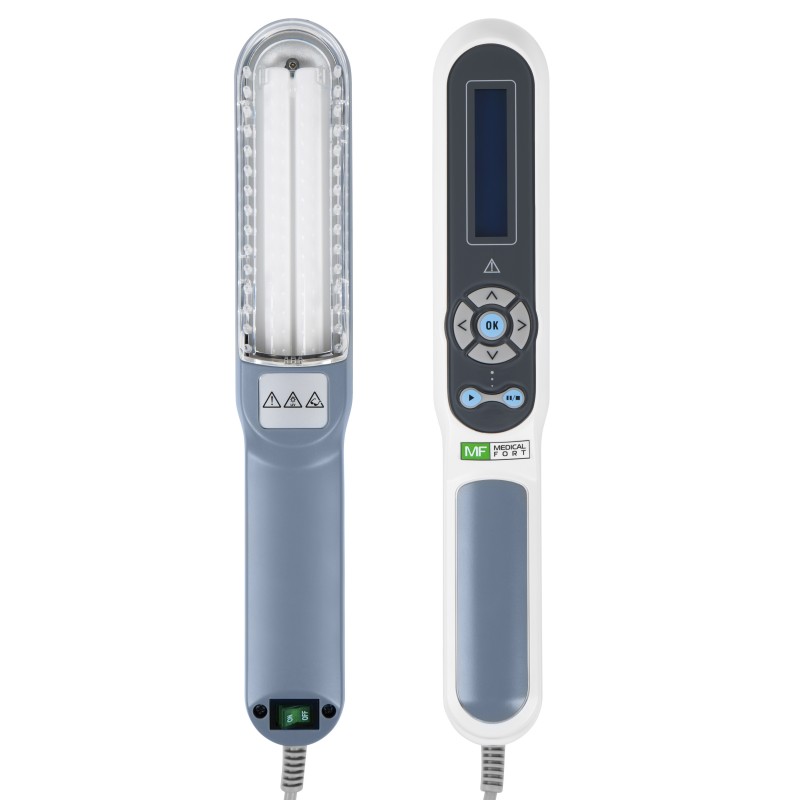 Устройство светотерапии «Dermalife» MFT-01 предназначено для лечения кожных заболеваний (псориаз, витилиго, плоский лишай и др.). Лечебное воздействие обеспечивает сменная УФ лампа Philips Pl-s 9w/01/2p, на основе которой работает аппарат.
