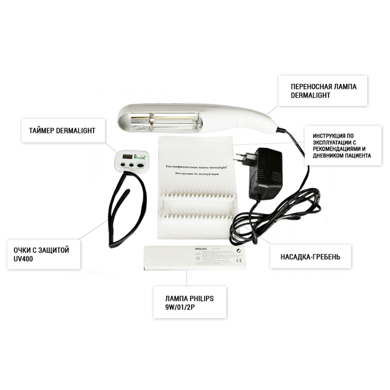 Показания к применению ультрафиолетовой лампы Dermalight RU:
