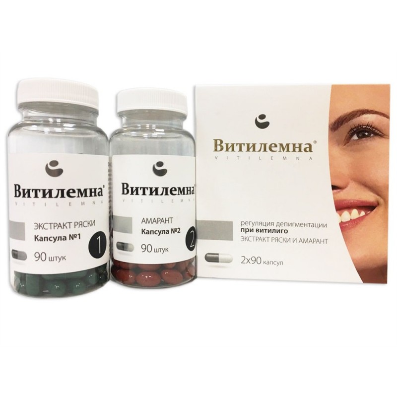 Таблетки для регуляции депигментации Витилемна – это натуральное средство, которое применяется для лечения псориаза и витилиго. Отличительной особенностью этого средства является практически полное отсутствие побочных эффектов и высокая эффективность лечения этих заболеваний. Действие препарата направлено на укрепление защитных механизмов иммунитета, в том числе на систему кожного иммунитета. Также действие Витилемны убирает пигментацию при витилиго, уменьшает уровень содержания в крови холестерина.