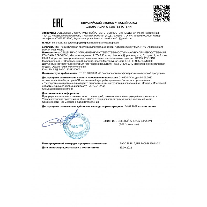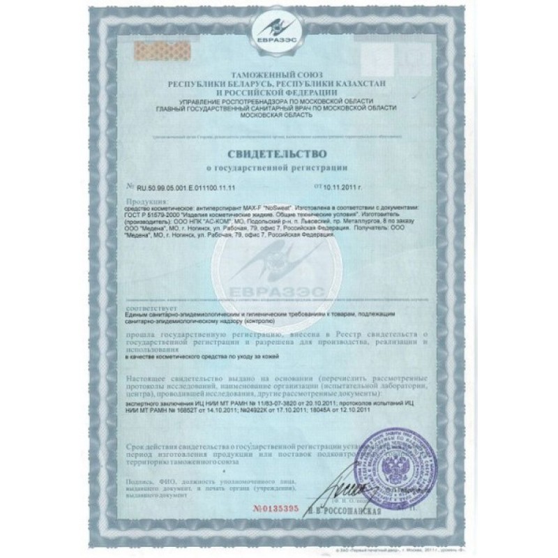 - Российский антиперспирант Max-F создается фирмой «Медена», в соответствии с европейскими стандартами охраны здоровья и на основе первоклассного немецкого сырья.